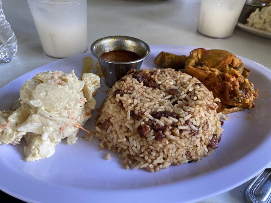 Aide (pronounced eye-day) and Orlando, the CELA representatives who will also be our guides for the duration of the trip, met us outside and picked us up in a van. From there we began the drive up to San Ignacio in western Belize, which is where we will be based for the duration of our stay. On the way, we stopped for lunch at a small restaurant on the side of the road where we were able to try some of the local cuisine, including rice and beans. While we were there, we also got a small glimpse of the surrounding nature. There were many different flowers and plants around the restaurant, which gave us a first look at some of the local vegetation.